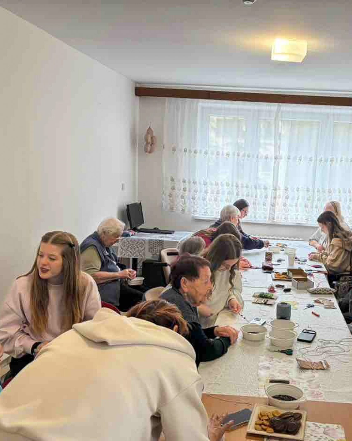 Opäť sme zavítali za našimi známymi seniormi do CSS Letokruhy v Žiline. Naše tretiačky ich učili pliesť náramky z nitiek a korálikov 😊 Vyskúšali sme rôzne techniky – niektoré boli dôverne známe, iné úplne nové.